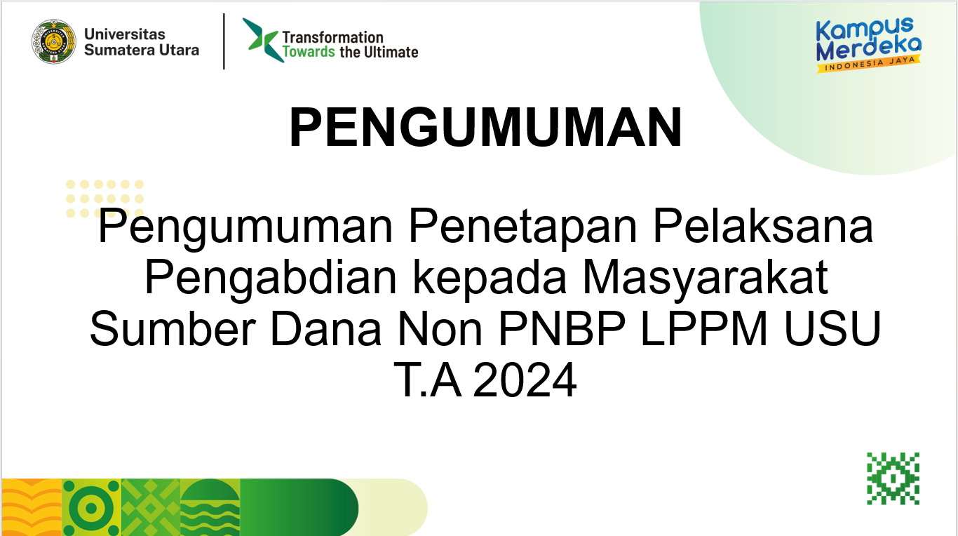 Universitas Sumatera Utara tersebut telah ditetapkan pelaksana Pengabdian